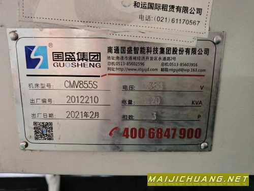 苏州格勒玛850加工中心一台,2019年设.