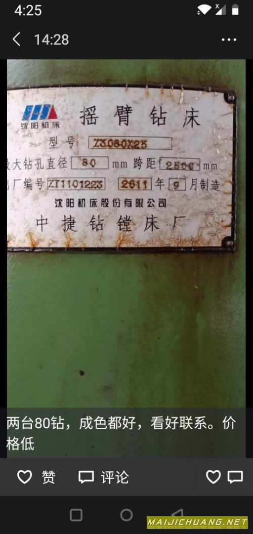 出售:沈阳中捷3080摇臂钻,同款两台